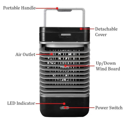 Mini ventilateur de climatisation à LED rechargeable à 3 vitesses