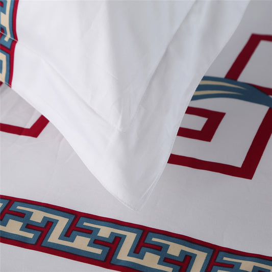 Parure de lit quatre pièces en coton imprimé à longues fibres