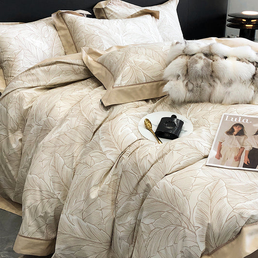 Parure de lit de luxe quatre pièces avec broderie de fleurs de champagne européen