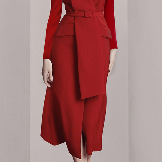 Nouvelle robe rouge à col irrégulier